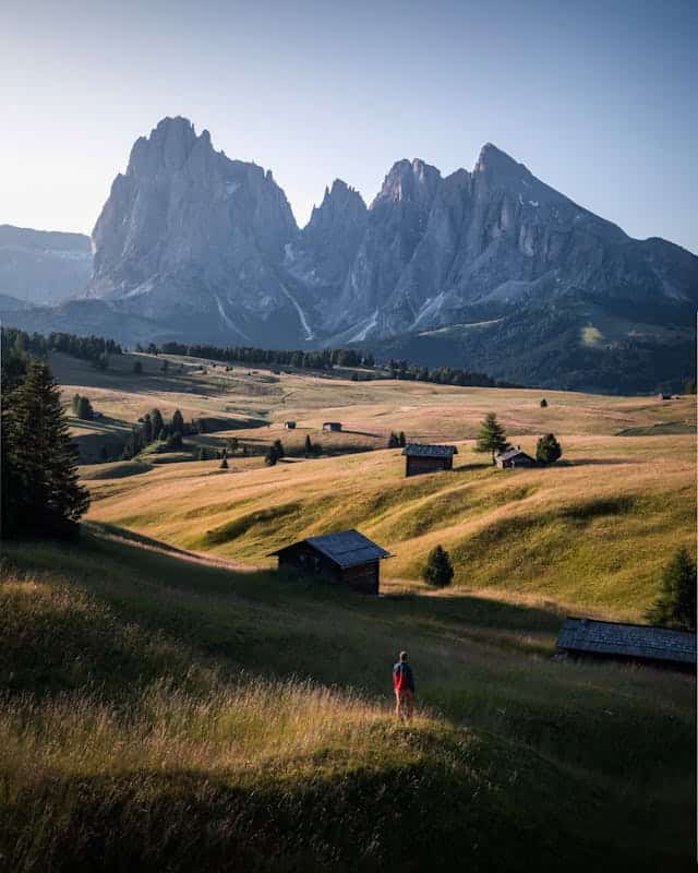 L’Alpe di Siusi est particulièrement agréable à l’aube, quand la lumière du matin éclaire doucement l’alpage. Le plus beau spot pour voir le soleil se lever se situe juste ici : plus beau point de vue pour le lever de soleil à Alpes di Siusi.