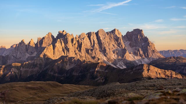 Une fois au sommet, le paysage est grandiose : vue à 360° sur les Dolomites d’Ampezzo, les Cinque Torri, le Monte Nuvolau et une succession de crêtes aux teintes dorées au coucher du soleil. C’est un lieu idéal pour admirer le coucher du soleil ou simplement profiter d’un moment de calme entre prairies et sommets. Plusieurs petits sentiers permettent de s’éloigner de la route principale pour profiter d’une vue dégagée sur les montagnes.