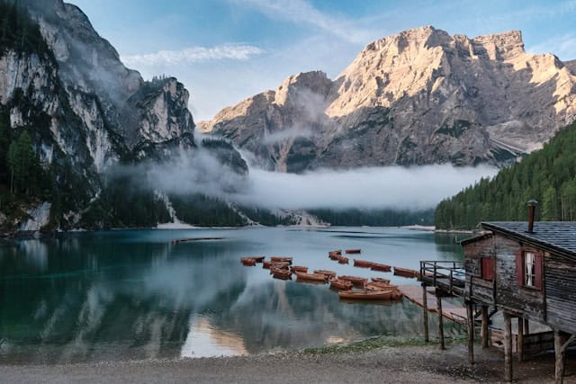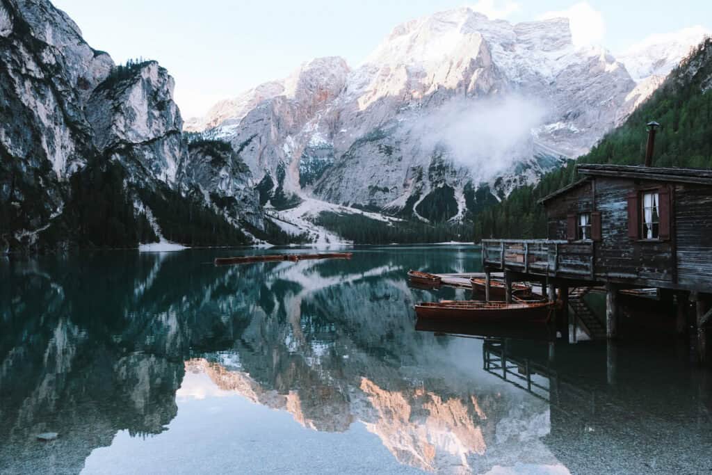 Cette première journée marque votre arrivée dans les Dolomites. Une entrée en matière parfaite avant de s’aventurer sur les cols et sentiers des prochains jours. Selon ton point de départ (Venise, Vérone ou du Lac de Garde), compte entre 3 et 5 heures de route pour rejoindre le Lago di Braies, l’un des plus beaux lacs de la région.