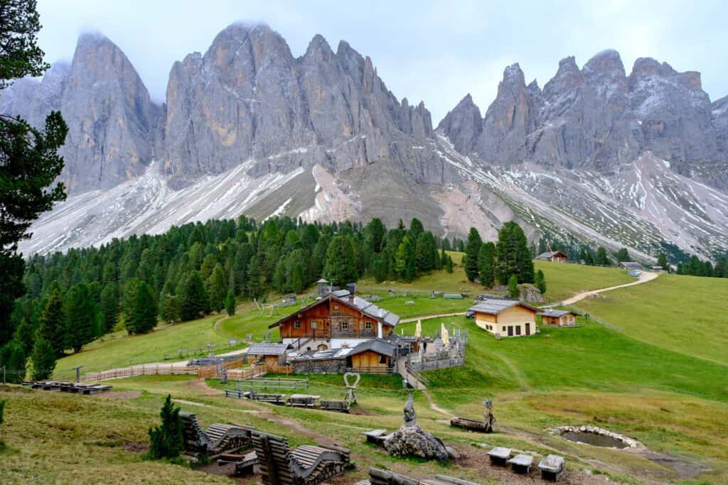 Pour ce quatrième jour dans les Dolomites, direction le Val di Funes, une vallée emblématique dominée par les majestueuses montagnes de l’Odle. Le secteur est réputé pour ses paysages de carte postale, et surtout pour la superbe randonnée menant au refuge Geisler Alm, un incontournable si tu voyages dans cette région.