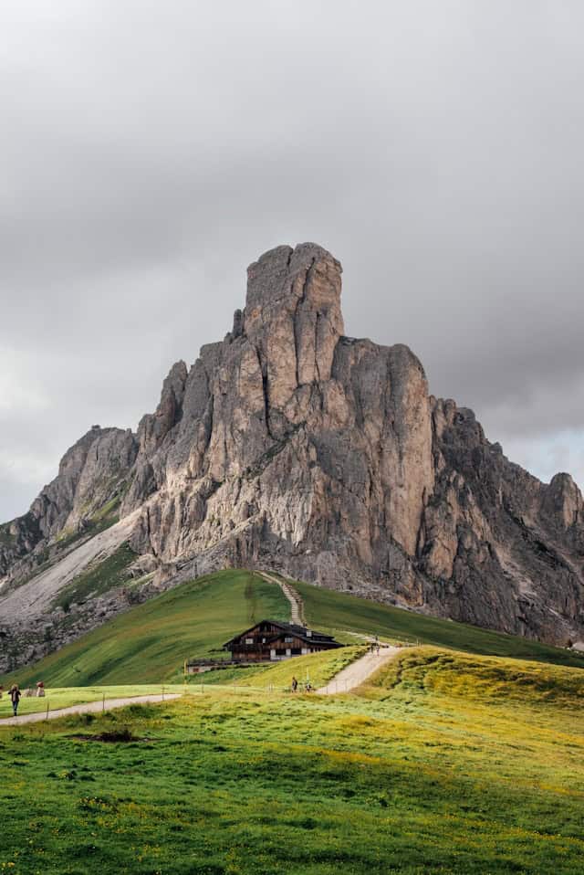 Après la randonnée du Lago di Sorapis, reprenez la route en direction du Passo di Giau, à environ 40 minutes de route. Ce col, perché à 2236 mètres d’altitude, est l’un des plus spectaculaires des Dolomites. Sur la route pour rejoindre le col, tu emprunteras la fameuse Snake Road, une succession de virages en lacets qui serpentent à flanc de montagne. Si tu as un drone, c’est clairement le moment de te faire plaisir : la vue aérienne sur cette route sinueuse entourée de sommets est tout simplement incroyable.
