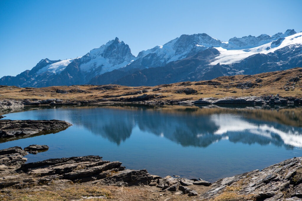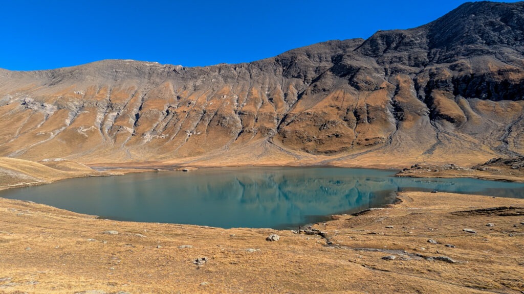 Parce que l’arrivée est spectaculaire. Parce que l’on y observe facilement marmottes et bouquetins. Et surtout parce qu’une fois assis sur les rochers, face au lac parfaitement immobile, le temps semble suspendu.